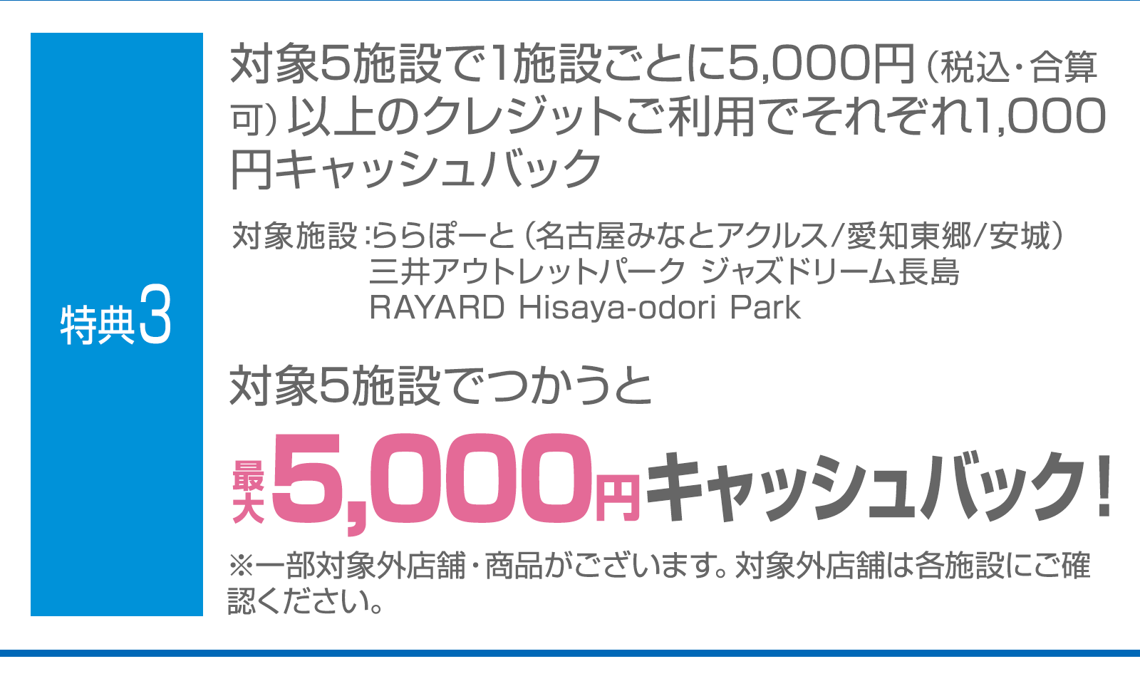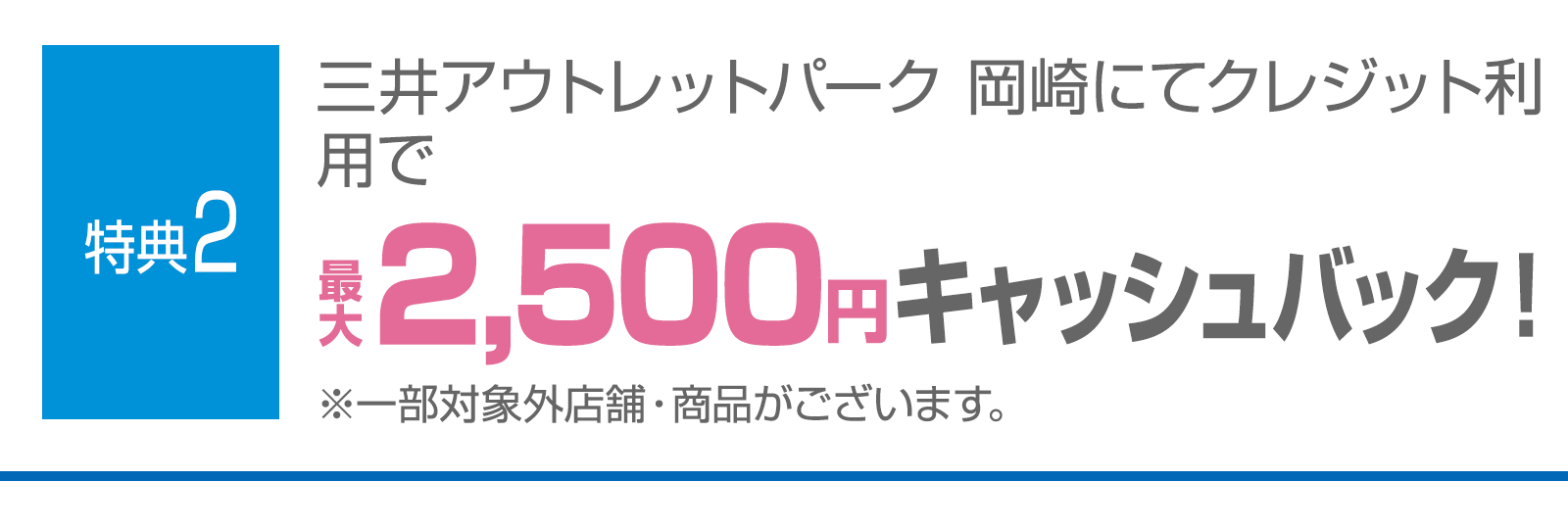 特典2 三井アウトレットパーク 岡崎にてクレジット利用でキャッシュバックについて